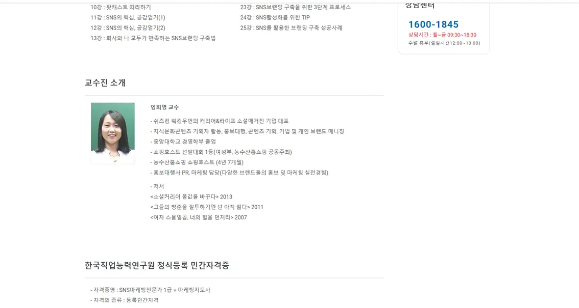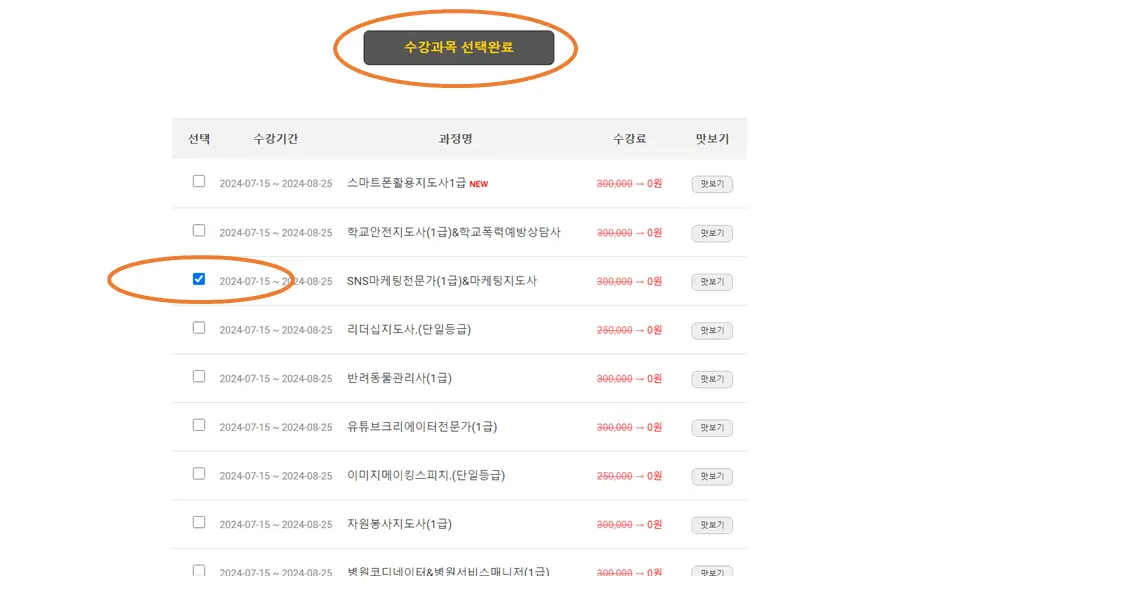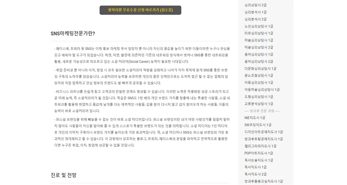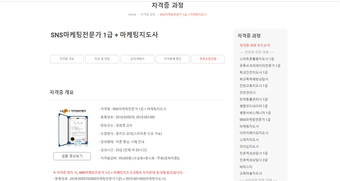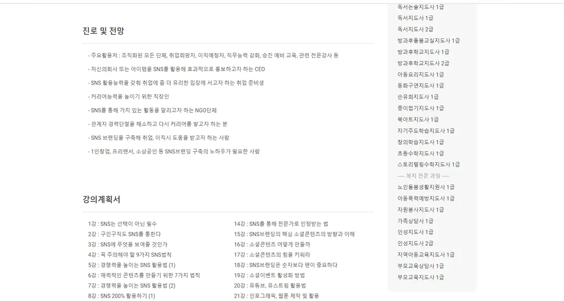 | 한국자격평생교육원 수강 과정