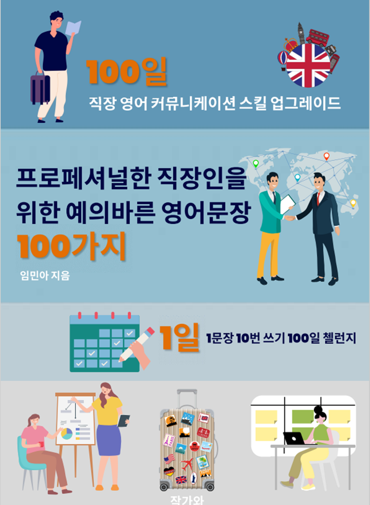 책에 소개된 문장들을 공부하고 자유롭게 쓰게 된다면 여러분은 비지니스에서 프로페셔널하고 예의바르며 품격있는 영어 표현 스킬을 갖추게 될 것입니다. 이 도전을 응원하며, 이 책과 함께 100일 첼런지를 시작해보세요! 지금 바로 아래 링크를 클릭하여 무료 전자책을 다운로드받고, 영어 비즈니스 커뮤니케이션 능력을 향상시키세요. 여러분을 응원합니다. 화이팅!
