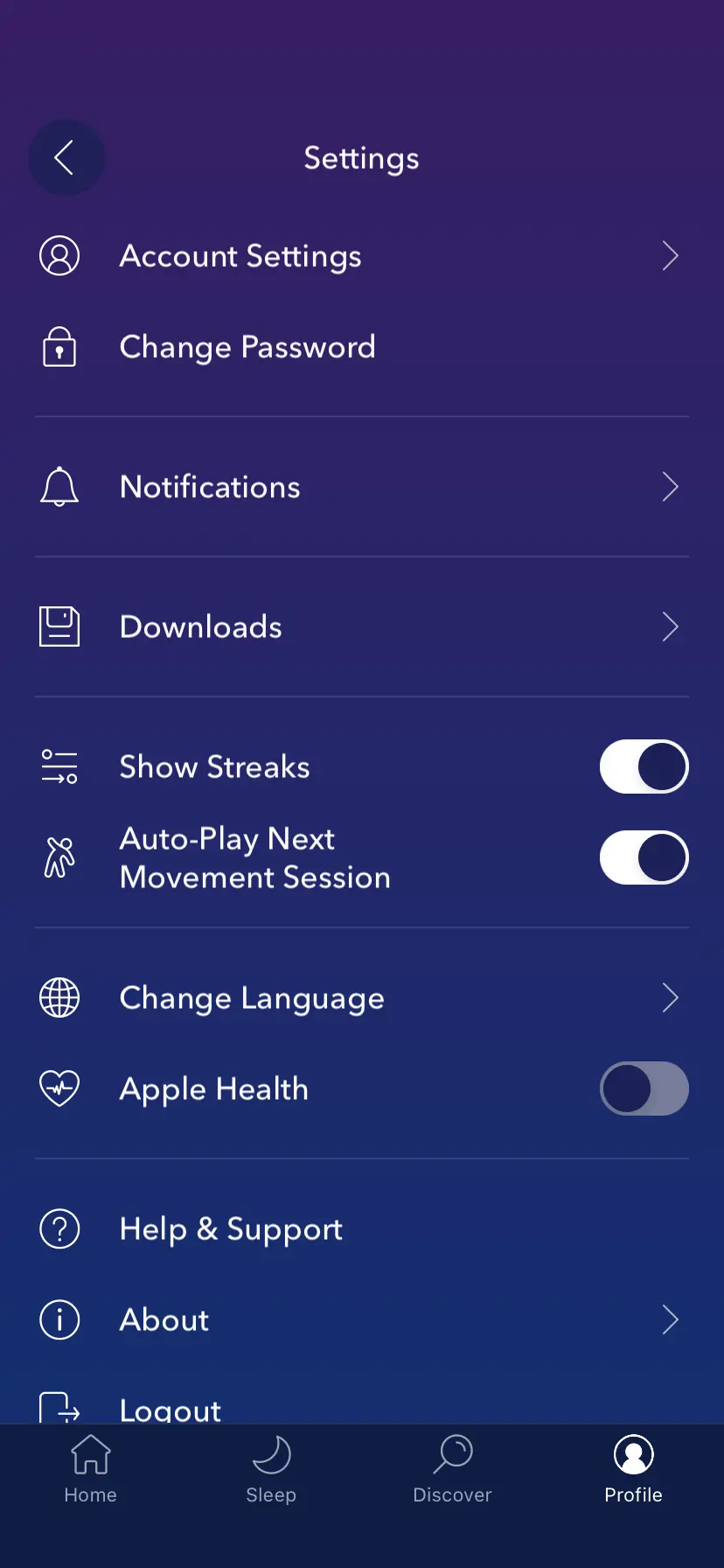 Calm은 수면에 도움이 되는 다양한 콘텐츠를 제공합니다. 사용자는 ‘굿 나잇 스토리’나 자연의 소리와 같은 수면 관련 콘텐츠를 통해 더 나은 수면을 취할 수 있습니다.