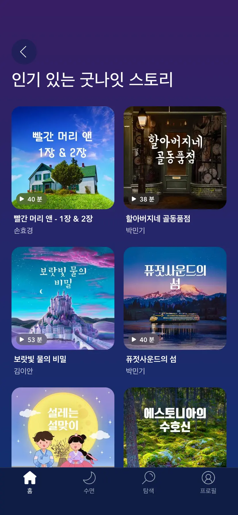 - 수면 이야기: 더 나은 수면을 위해 차분한 목소리로 들려주는 이야기가 있습니다. 이 기능은 특히 불면증에 시달리는 사람들에게 유용하며, 잠자리에 들기 전에 들으면 효과적입니다.