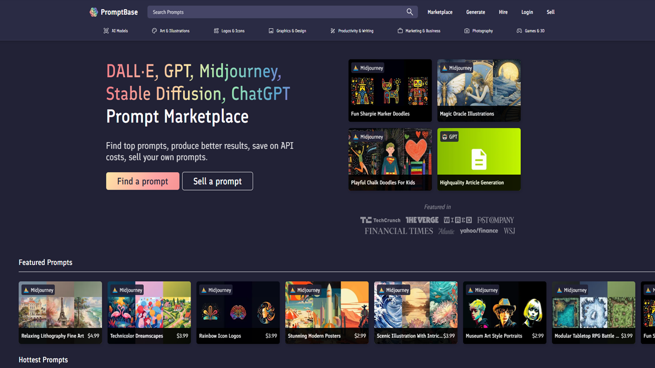 PromptBase는 DALL·E, GPT-3, Stable Diffusion, Midjourney 의 AI 아트 (AI 프롬프트)를 사고팔 수 있는 가장 인기 있는 마켓플레이스입니다.