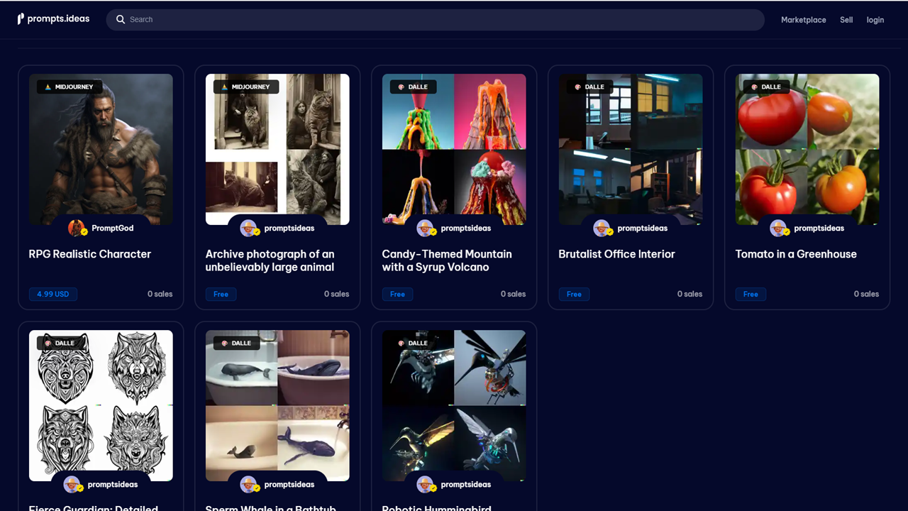 이 플랫폼에서 프롬프트에 대한 가장 인기 있는 가격 범위는 $0.99에서 $9.99입니다. 또한 모든 등록 사용자에게 무료 프롬프트 컬렉션을 제공합니다.